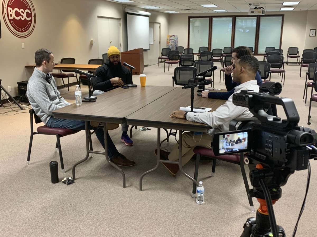 Instead of using a single keynote speaker as in the past, originally chosen speaker John Sims, athletic director at St. Peter’s Lutheran School, and longtime friend and Columbus City Council member Jerone Wood, both of whom are Black, decided to invite two of their white friends — Chris Scott and Kyle Hendricks — to have an informal discussion. The four sat around a table in a Bartholomew Consolidated School Corp. meeting room.