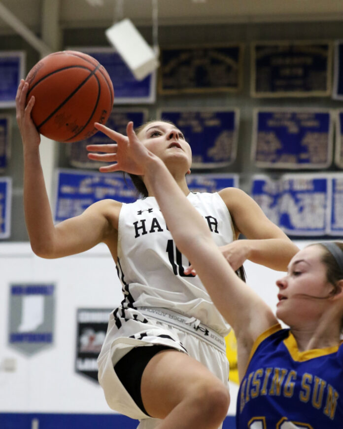 To start the second half, Hannah Taylor hit back-to-back 3-pointers to help kick start a 10-2 run to give Hauser (8-15) its largest lead of the game at 31-22. Rising Sun (5-16) slowly climbed back to cut it to 37-35 until a 3-pointer from Maddi Wilson gave the Shiners the go-ahead lead 38-37. Hannah Johnson then hit a mid-range jumper to put the Jets ahead 39-38 heading into the fourth quarter.
