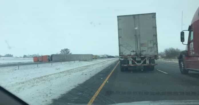 COLUMBUS, Ind. — First responders are reporting that a semi has overturned in the northbound lanes of I-65 at the 81 mile marker, blocking traffic.