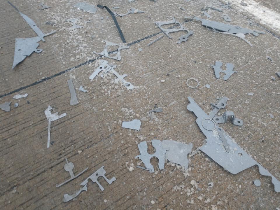 Steel parts in the roadway caused about 20 vehicles to have flat tires along the interstate, said Lt. Matt Harris, Columbus Police Department spokesman. INDOT is also at the scene clearing the debris from the roadway.