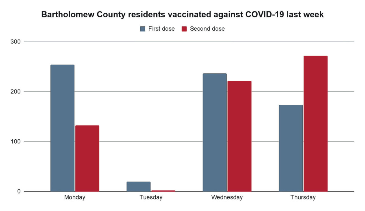 On Wednesday, 459 Bartholomew County residents got vaccinated, followed by 446 people on Thursday.
