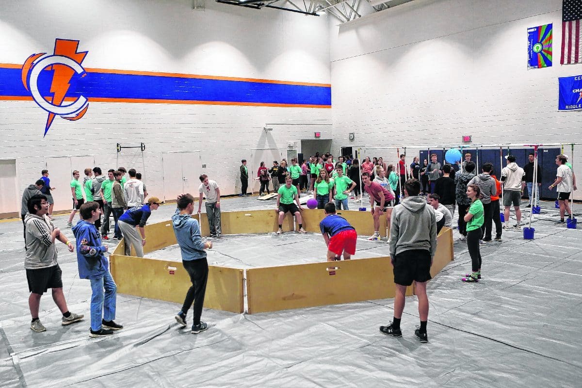 Students play Gaga ball, corn hole and 9 square during the Dance Marathon, sponsored by Turning Point, held at Central Middle School, Saturday, February 29, 2020 Carla Clark | For The Republic