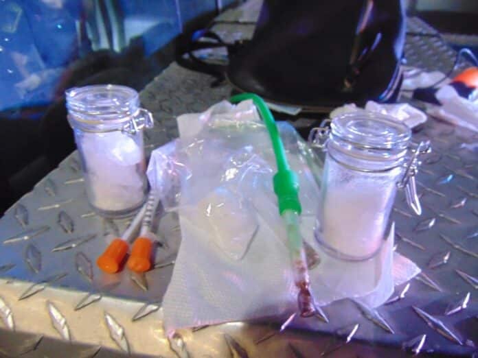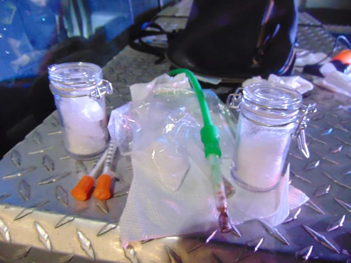 Officers conducted a search of the vehicle and recovered more than 72 grams of methamphetamine and drug paraphernalia including two syringes as well as several small plastic bags with white residue inside. Ford was placed under arrest and transported to the Bartholomew County Jail on preliminary charges of dealing in methamphetamine (Level 2 felony), possession of methamphetamine (Level 3 felony), possession of a legend drug injection device (Level 6 Felony), and possession of drug paraphernalia (Class C misdemeanor).
