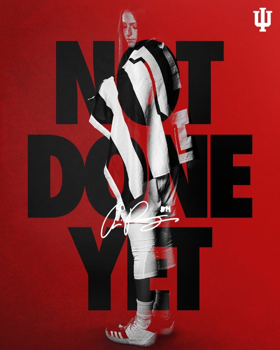 “See you next season Hoosiers! Unfinished business” read the Tweet above a red poster with Patberg in her uniform superimposed over the words “NOT DONE YET”