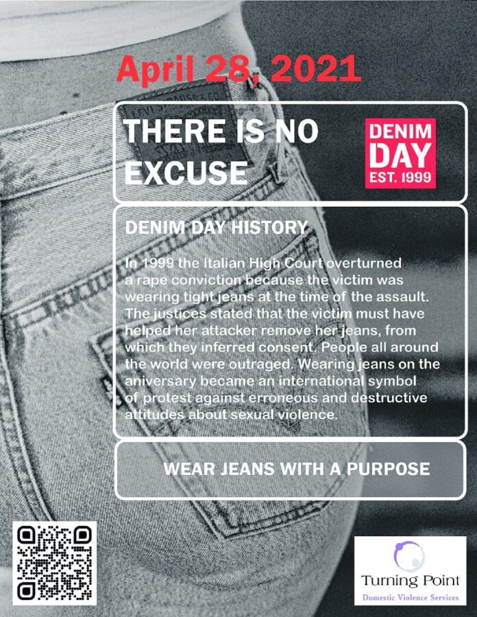 Turning Point Domestic Violence Services is reaching out to the community seeking participants in this year’s Denim Day as part of an awareness campaign during Sexual Assault Awareness Month.