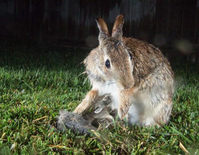 RABBITS: Baby rabbits are left unattended through much of the day and night. Mother cottontails do this to prevent drawing predators to the nest. If you see the rabbits, leave them alone.