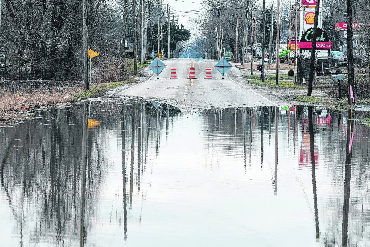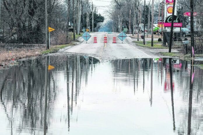 High water stretches across State Road 11 in Columbus, Ind., Monday, Jan. 13, 2020. Heavy rains over the weekend caused flooding and road closures in parts of Columbus and Bartholomew County. State Road 11 was closed due to high water. Mike Wolanin | The Republic