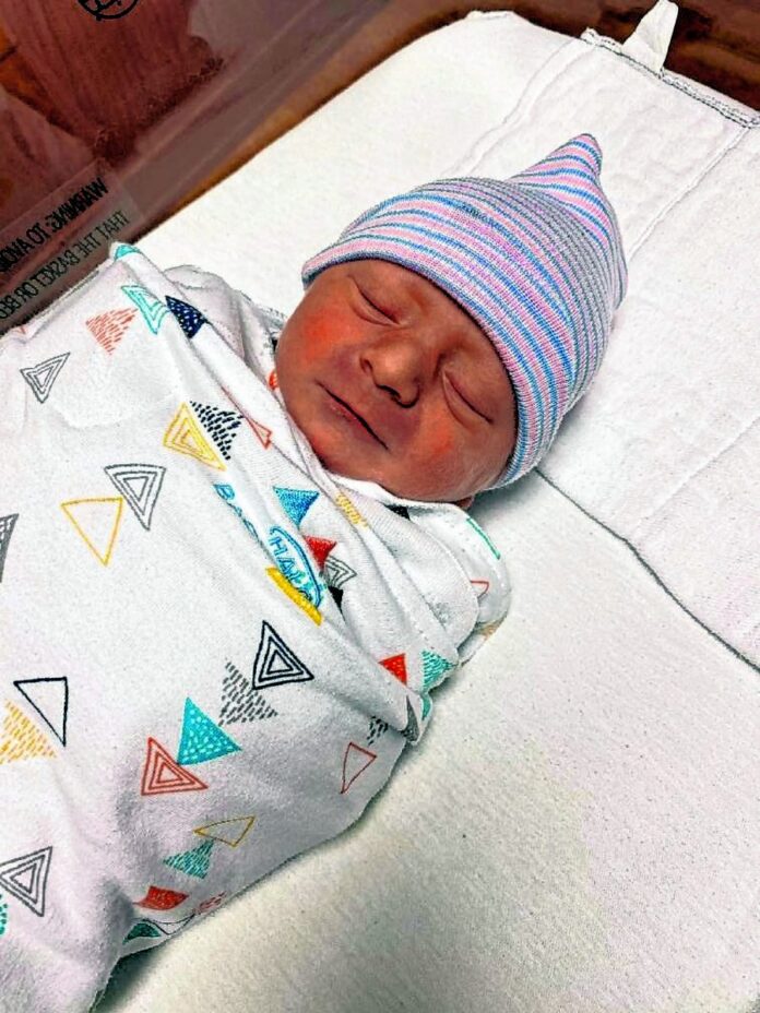 When Shuffitt arrived, Rhodes was in the bathroom and couldn’t move, so he picked her up and laid her on the floor. Then she started pushing and gave birth to Kyzer at about 5:38 a.m. He is the couple’s second child together.