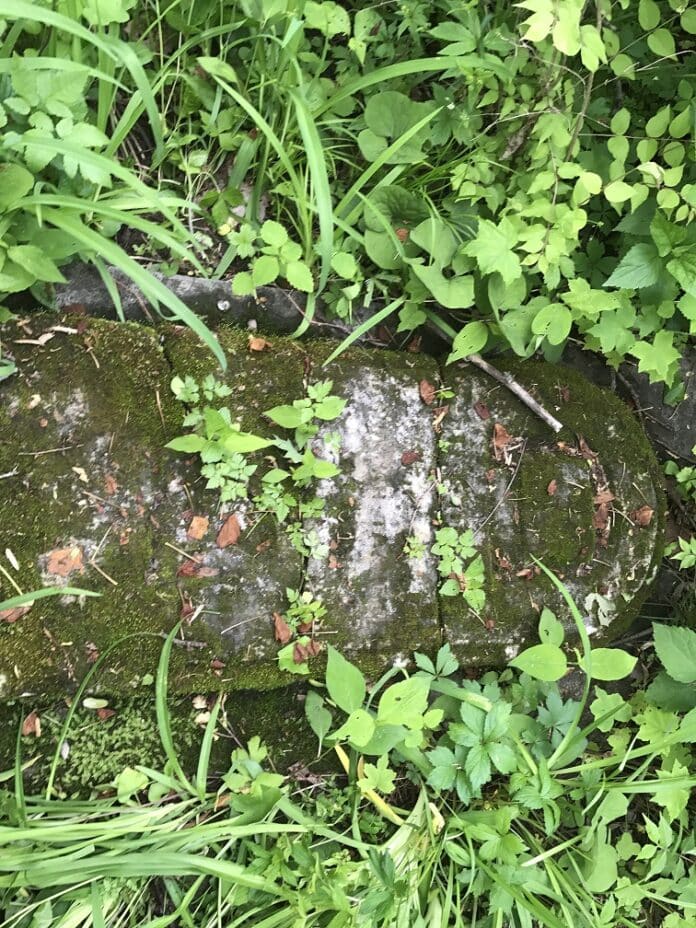But today, the graves of ‘The Major’ and his wife, Ursula (1783-1865) are nearly impossible to find. With their headstones lying flat on the ground, the markers are covered with moss, decaying leaves and giant weeds. In fact, the forested cemetery is nearly all hidden by tall grass, brush and bramble, and fallen trees.