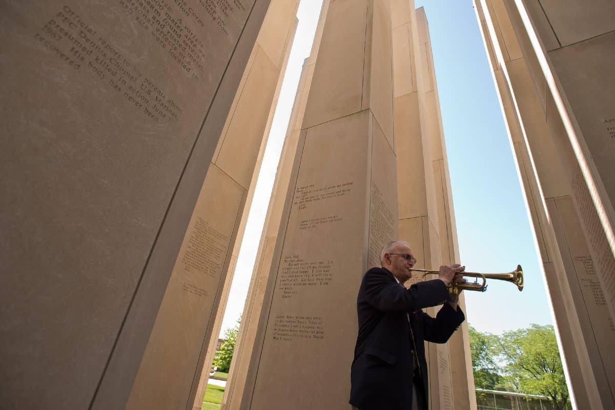 Rev. William Weaver plays Taps during a Memorial Day service on the lawn of the Bartholomew County Courthouse, Monday, May 30, 2016, in downtown Columbus. Mike Wolanin | The Republic Mike Wolanin | The Republic