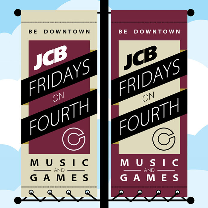 JCB Fridays On Fourth, on the closed-to-vehicle-traffic one block section of Fourth Street off Washington Street, will include extra space for outdoor restaurant dining, life-sized versions of tic tac toe, cornhole, and live music meant to add ambience.