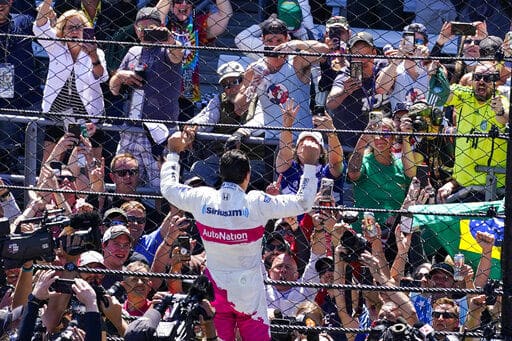 Castroneves wasn’t done yet. At 46 and one of the oldest drivers in the field, he sprinted along the frontstretch of the speedway waving to the 135,000 fans in attendance. He was interrupted during his victory jog by multiple drivers and most of Team Penske, the organization he spent more than two decades with and won three Indy 500s.
