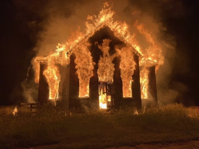 Known as Petersville School, the structure had been vandalized in recent years, according to some Republic readers who sent in photos of the fire.