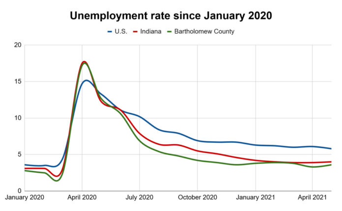 Over the first two weeks in June, the number of Bartholomew County workers filing initial jobless claims has continued its general downward trend since early 2020, when countless businesses shut down and laid off employees as COVID-19 infections swept across the country, according to state records.