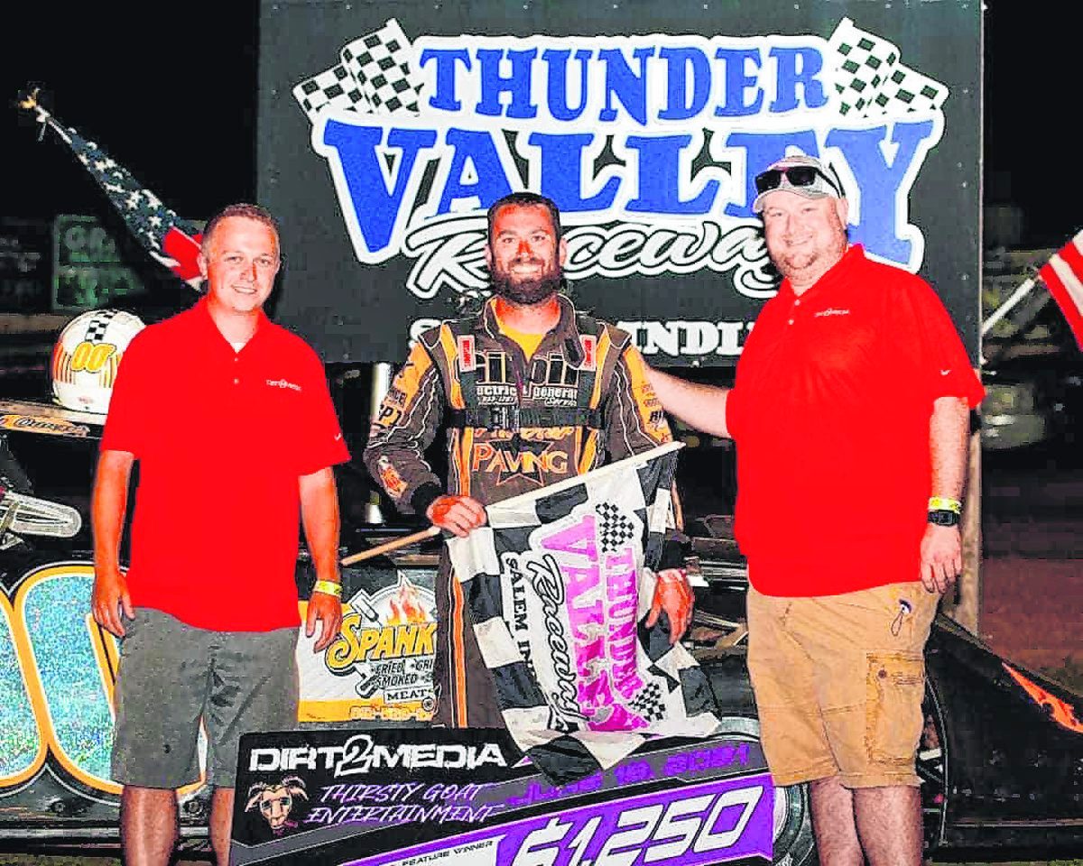 Jeremy Owens of North Vernon won his second straight crate late model feature on June 18 at Thunder Valley Raceway in Salem. Zack Burton of Edinburgh was second, followed by Dusten Carr from Underwood.