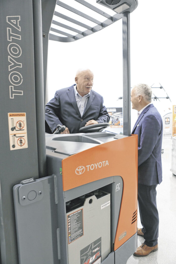 That was the scene Friday, as Toyota Material Handling presented Community Provisions of Jackson County, Inc with the donation of a reach truck. Their battery partner, EnerSys, is chipping in with a battery and charging unit, and Toyota’s local dealer, ProLift, will support the service and training, said Justin Albers, corporation communications and public relations specialist at Toyota.