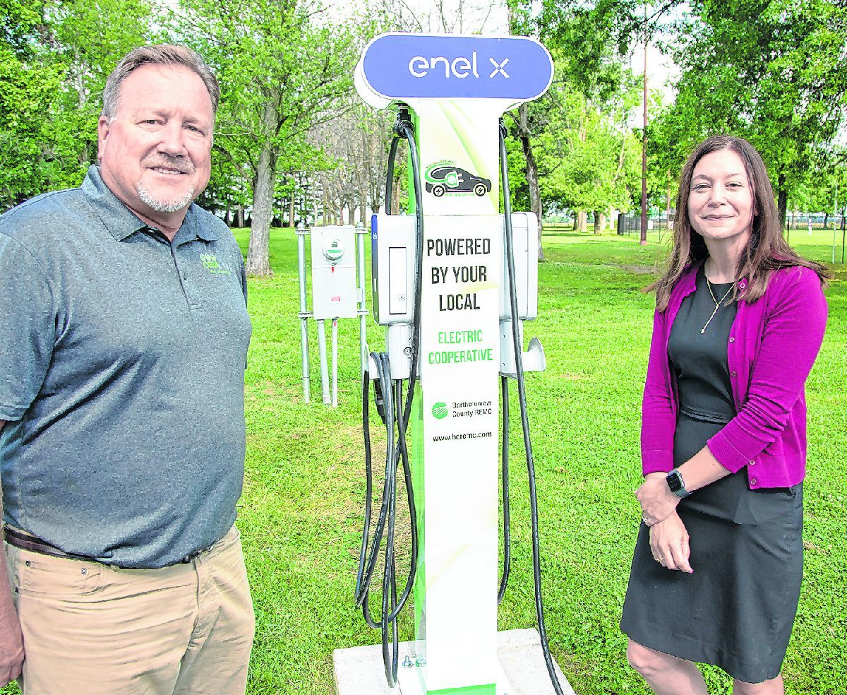 Bartholomew County REMC and CERAland park have partnered to install a Level 2 EV (electrical vehicle) charger at the park.