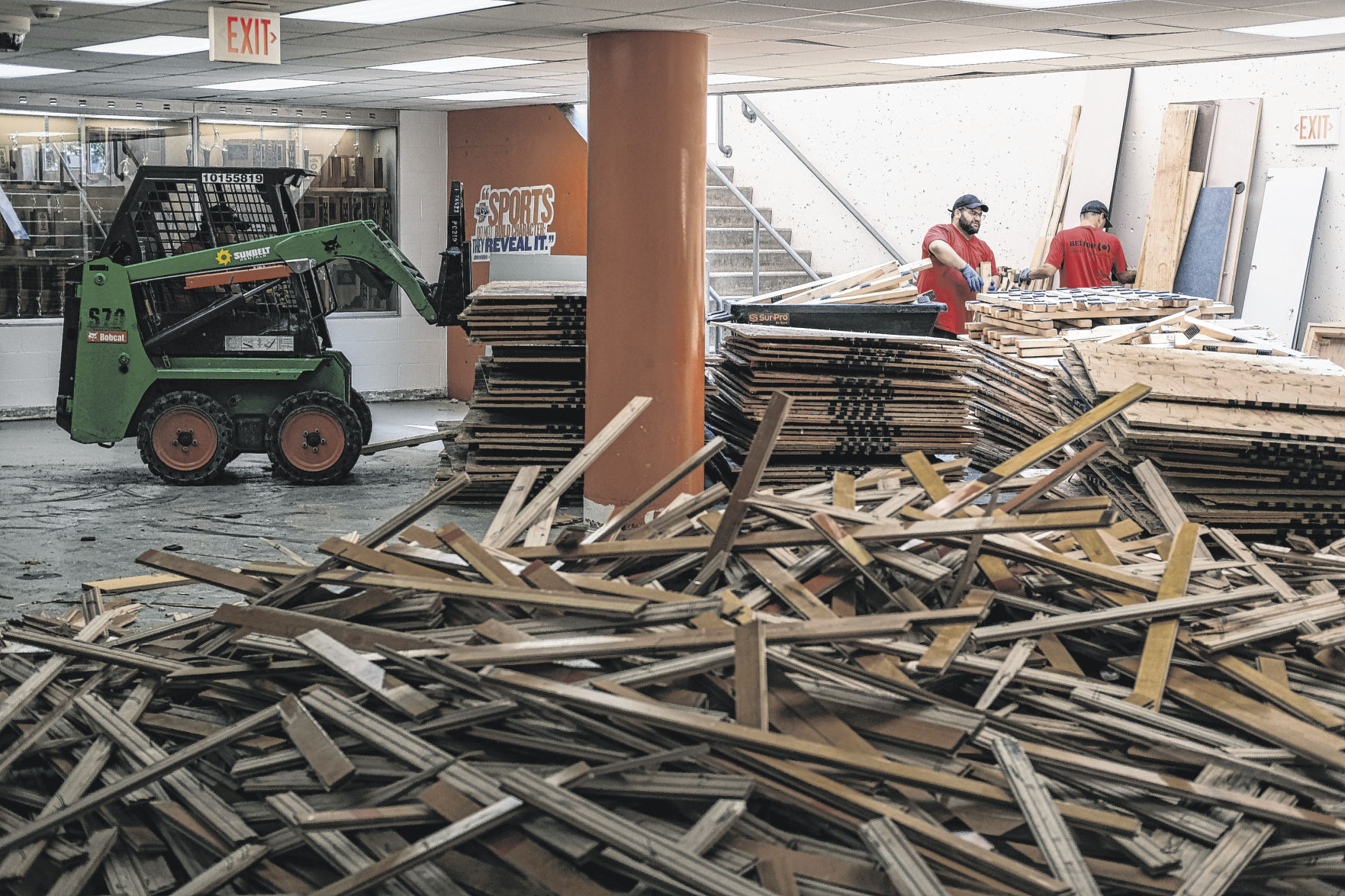 “We did some cuts on different parts of the (main gym) floor and found that there was water — not much water, but there was still water underneath all of it, basically,” he said. A vapor barrier prevented them from being able to dry it completely.