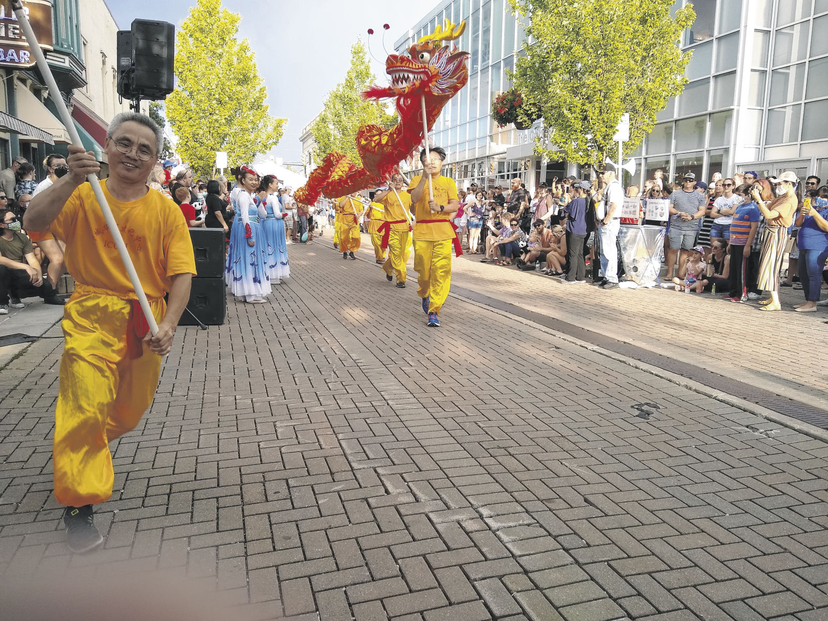 Just when it seemed like things hardly could get any hotter than the scorching 93 degrees at Saturday’s Chinese Expo, a proverbial and possibly fire-breathing dragon snaked its colorful way down Fourth Street in downtown Columbus.