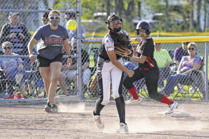 Hauser shortstop Hannah Taylor throws to first base against Rushville at Hauser, Monday, April 26, 2021. Paige Grider for The Republic