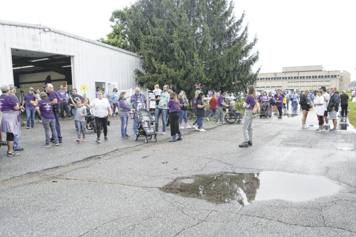 Some people start their walk and others visit during the Walk to End Alzheimer’s held at the Bartholomew County Fairgrounds Sunday, October 3, 2021 Carla Clark | For The Republic