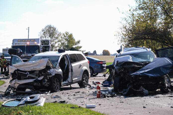 Bartholomew County Sheriff deputies said four vehicles collided in the accident, including two SUVs, a passenger car and a commercial pickup truck which was fully involved in flames when first responders arrived.