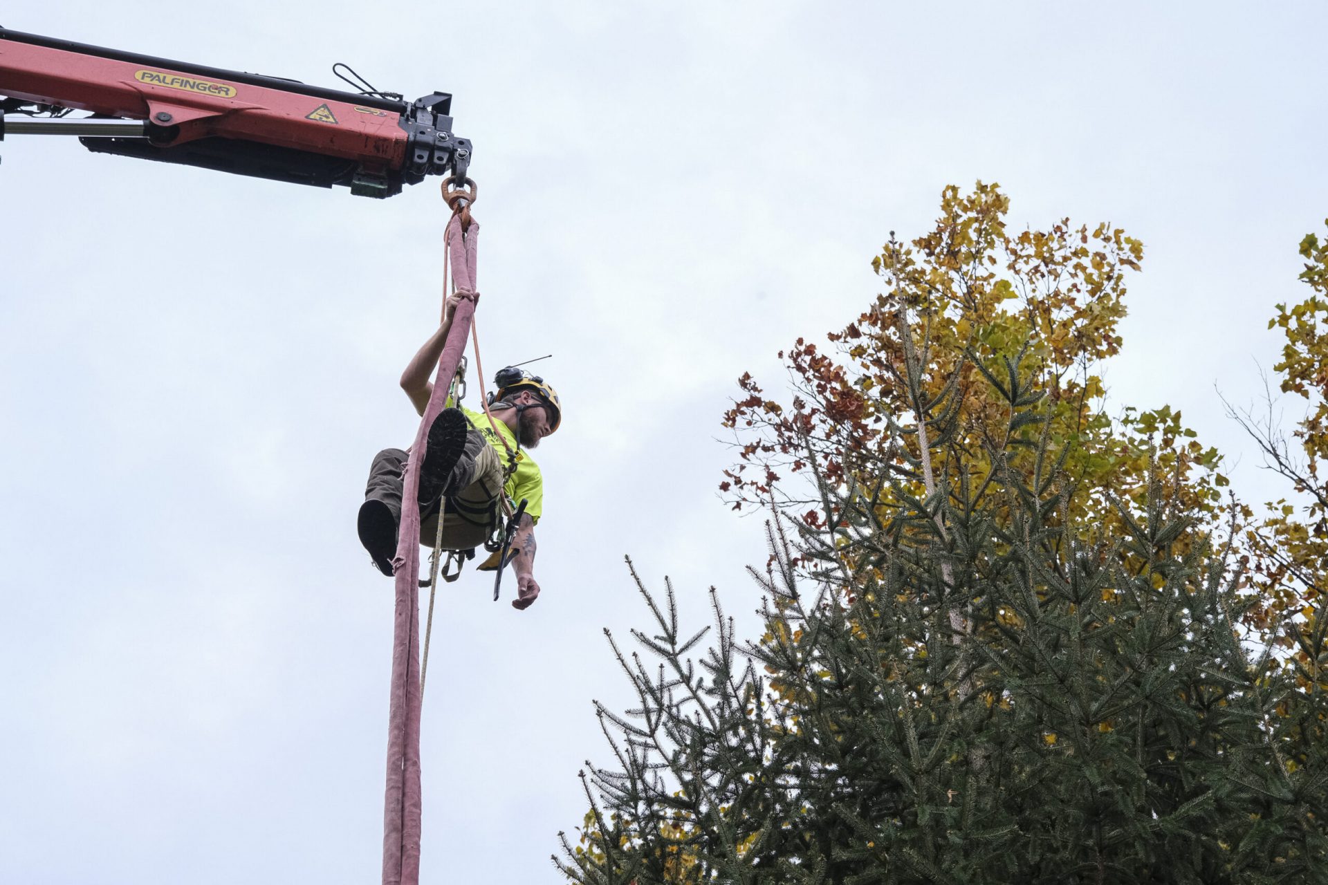 A25-foot Norway Spruce recently made its way from north Columbus to downtown before arriving at its new home — the city hall plaza — on Wednesday morning.