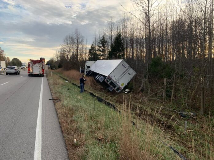 COLUMBUS, Ind. — Traffic is slow in the southbound lanes of I-65 near the 67 mile marker (a mile south of the Columbus exit) due to a semi which went into the ditch and overturned.