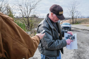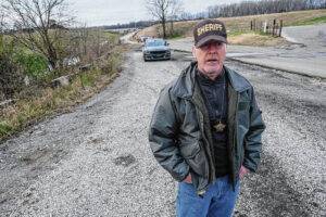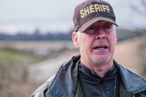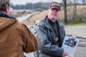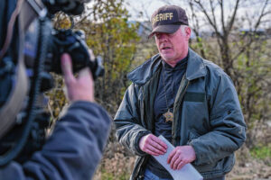 Mike Wolanin | The Republic Bartholomew County Sheriff Matt Myers prepares to give an update about search efforts to find missing 2-year-old Emma Sweet in Columbus, Ind., Friday, Nov. 26, 2021. Multiple public safety agencies were assisting the Bartholomew County Sheriff’s Department searching the East Fork White River after Sweet’s father Jeremy was discovered by duck hunters in his partially submerged truck in the river Friday morning.