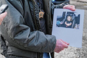 Mike Wolanin | The Republic Bartholomew County Sheriff Matt Myers holds a picture of missing 2-year-old Emma Sweet as he gives an update about search efforts to locate her in Columbus, Ind., Friday, Nov. 26, 2021. Multiple public safety agencies were assisting the Bartholomew County Sheriff’s Department’s search of the East Fork White River after Sweet’s father Jeremy was discovered by duck hunters in his partially submerged truck in the river Friday morning.
