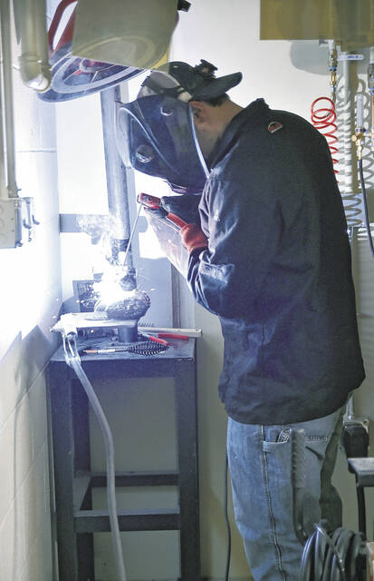 Seymour High School senior Trever Stuckwisch works in a welding booth in February 2020 in the school’s welding lab at the Ag-Science and Research Farm in the Freeman Field Industrial Park.