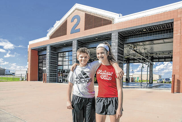 Republic file photo Solomon Hall, left, and Siddha Hall are shown in 2018 outside Fire Station 2 in Columbus working on their Friendship Wheels project for the Columbus Firemen’s Cheer Fund.