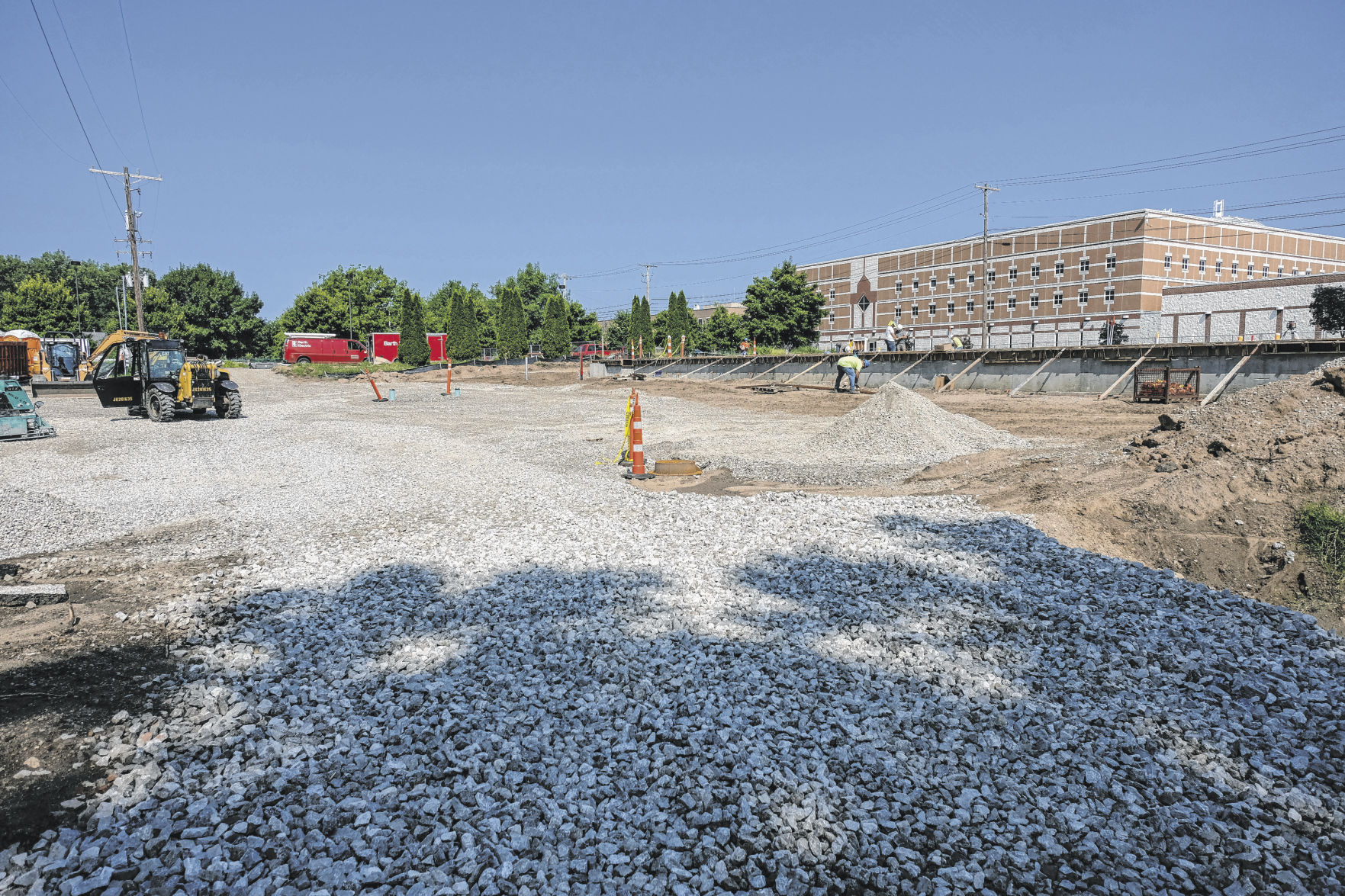 A view of the construction site for the new court services building in Columbus, Ind., Monday, Aug. 2, 2021. Mike Wolanin | The Republic