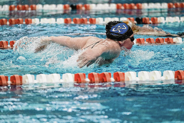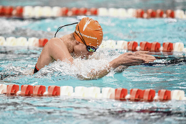 Proffitt was a double winner for the Olympians, taking the 50-yard freestyle in 24.87 seconds and the 100 butterfly in 59.50. Fellow senior Karissa Miller captured the 100 freestyle (57.41) and 100 backstroke (1:07.31).