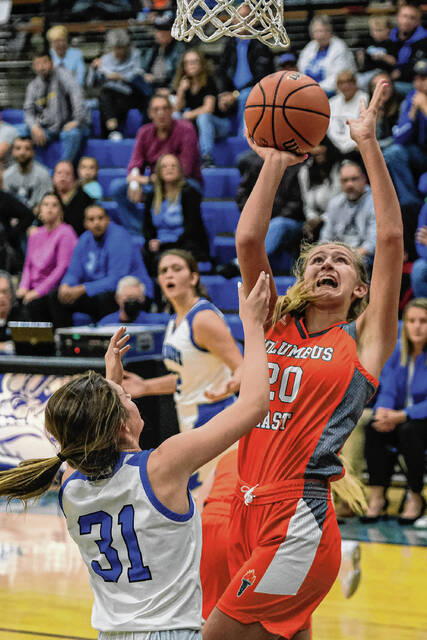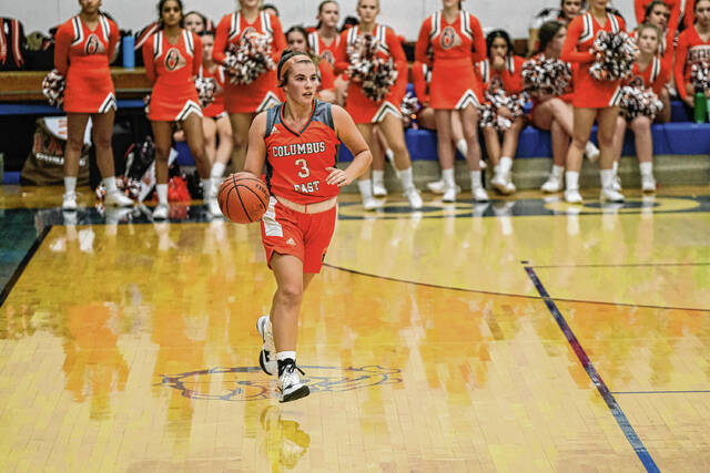 “Our press really got two them and affected them early,” East coach Danny Brown said. “When they attacked the basket, we got some big blocks from Harley Gant and Saige and Leah (Bachmann) inside, and it just kind of threw them off a little bit and our offense was just clicking. Our defense, our press created a lot of offense for us this evening, and we capitalized on those big-time tonight. We always talk about, if we get a steal, we want to attack the basket or get an easy 3-point shot, and I thought we did that tonight.”