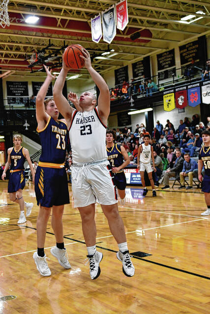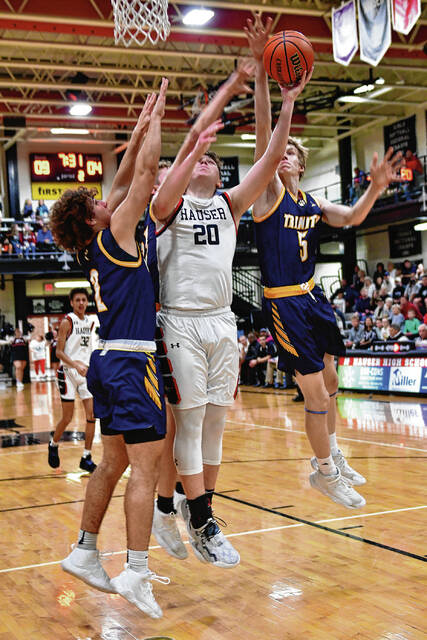 “I don’t know if we were real pretty, but I thought we were gritty tonight,” Hauser coach Brent Keck said. “I was really pleased with how we defended. I was really pleased with our rebounding effort. I thought Koby was outstanding on the backboards, and the rest of our group complemented him really well. I think that’s a real strength of Trinity’s basketball team – their ability to rebound the basketball.”