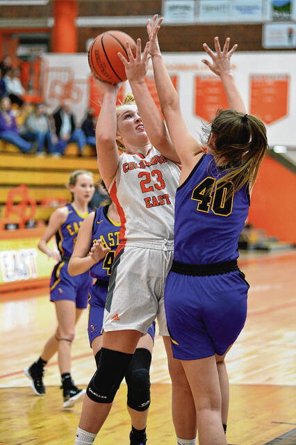 “Koryn just brought a lot of energy tonight,” East coach Danny Brown said. “She was determined to have a good game, and the first half was as good as I’ve ever seen her play. She was aggressive, she shot the ball well and she was making assists to go along with those 26 first-half points.”