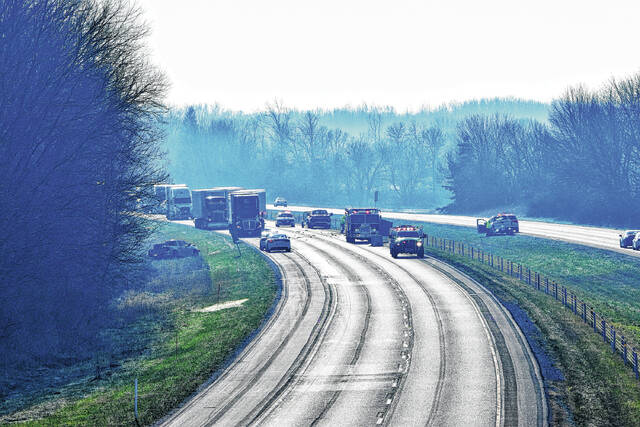 Noah Crenshaw | Daily Journal A serious accident on Interstate 65 south of the Franklin exit caused both the north and southbound lanes to close temporarily Tuesday. Two people were sent to local hospitals.