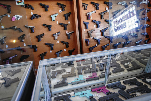 Mike Wolanin | The Republic Various types of handguns are on display at Phoenix Guns in Columbus, Ind., Monday, Feb. 26, 2018.