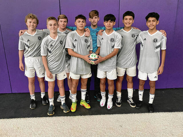 Club Olympia swimmers Joshua Pendleton, from left, Tony Machavariani and Connelly Furnish won medals at last weekend’s Mid States All-Star Championships at the Indiana University Natatorium in Indianapolis.