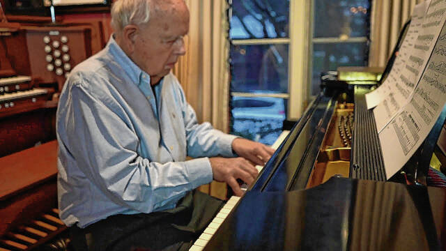 Longtime Bloomington pianist Charles Webb is shown at the keyboard.