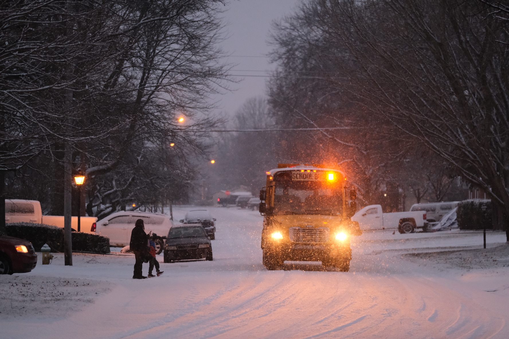 Students board a Bartholomew Consolidated School Corp. bus early Friday as snow continued to fall in Columbus neighborhoods. Photo by Mike Wolanin | The Republic