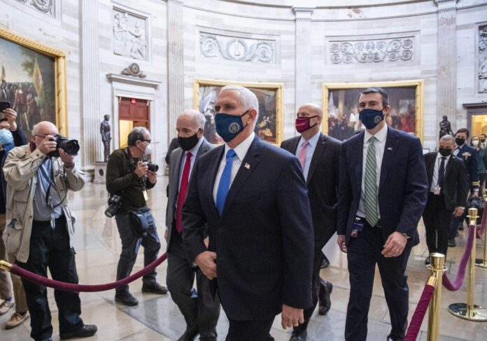 Members of the mob that day shouted “Hang Mike Pence!” and erected a gallows on the west side of the Capitol. As the building was under siege, Pence and his family were whisked into a hideaway, narrowly escaping the attackers, before being taken to a more secure location elsewhere in the complex.