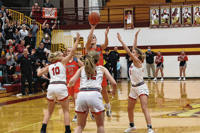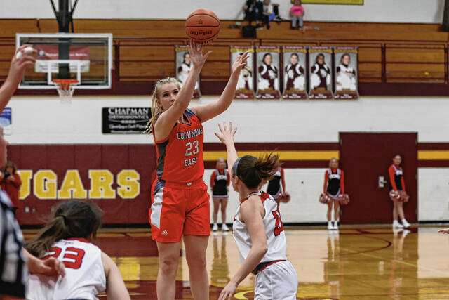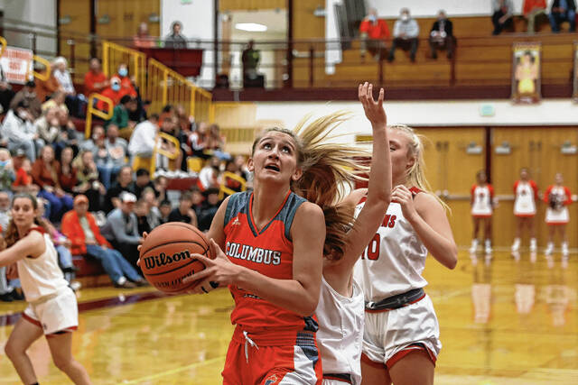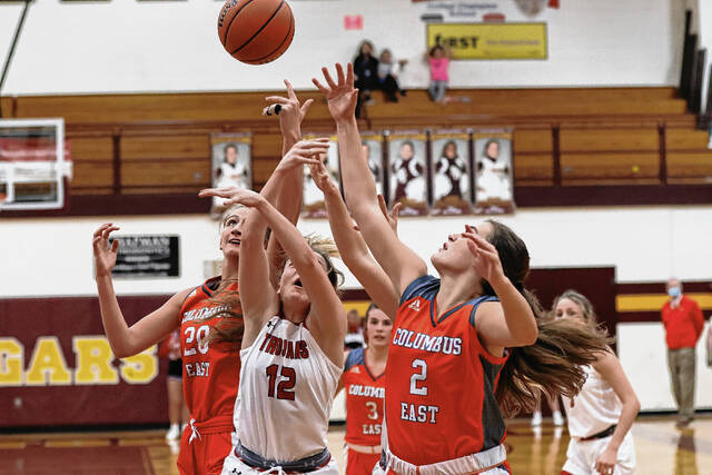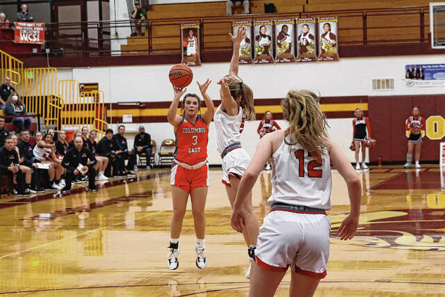Stahl then picked up her fourth foul, and Caitlyn Dick made a free throw. After a Trabel basket, the Olympians’ Koryn Greiwe converted a three-point play to tie it for the final time. Baskets by Trabel and Fox gave the Trojans the lead for good, and Columbus East couldn’t come closer than two the rest of the way.