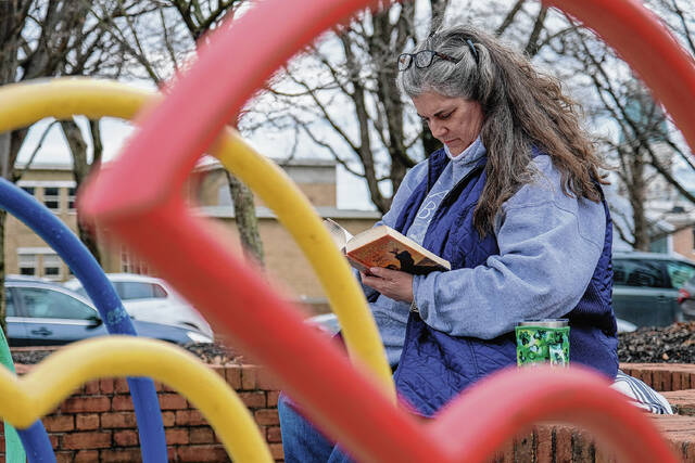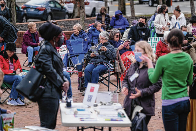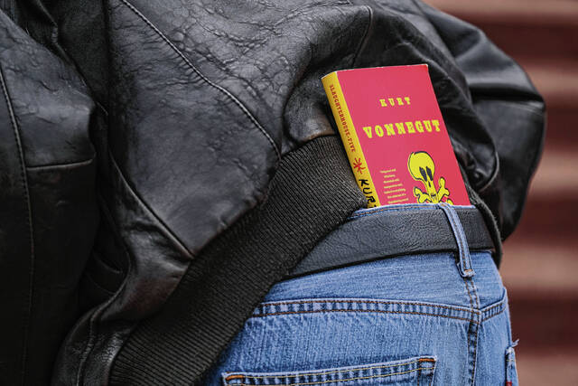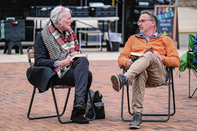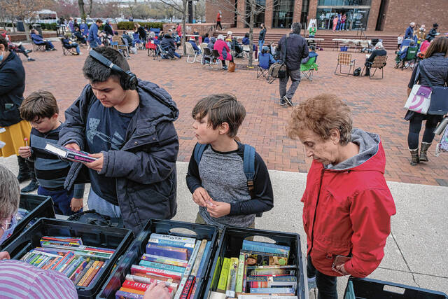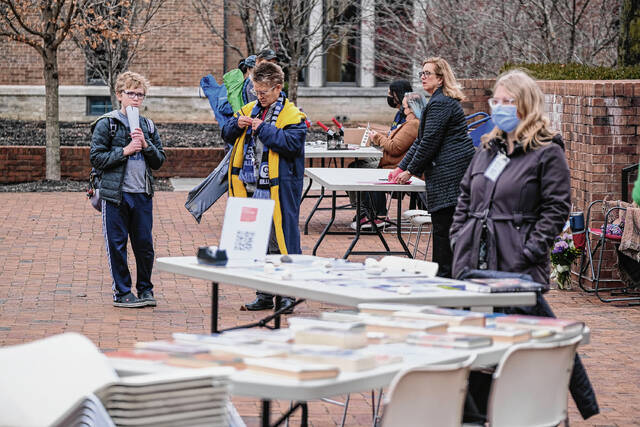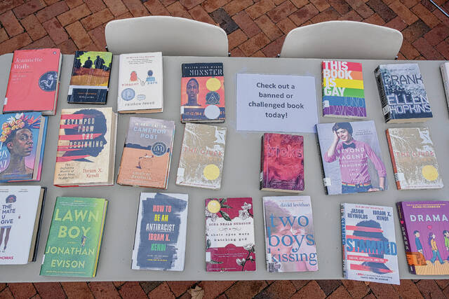 Columbus resident Terry Clark brought a bag of a few banned literary classics with him to a Community Read-In Wednesday afternoon at the Bartholomew County Public Library Plaza — a place that one attendee called “the community’s porch.”