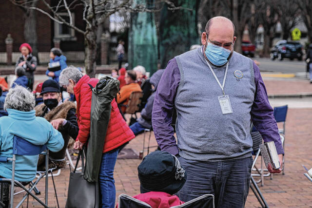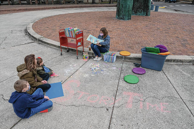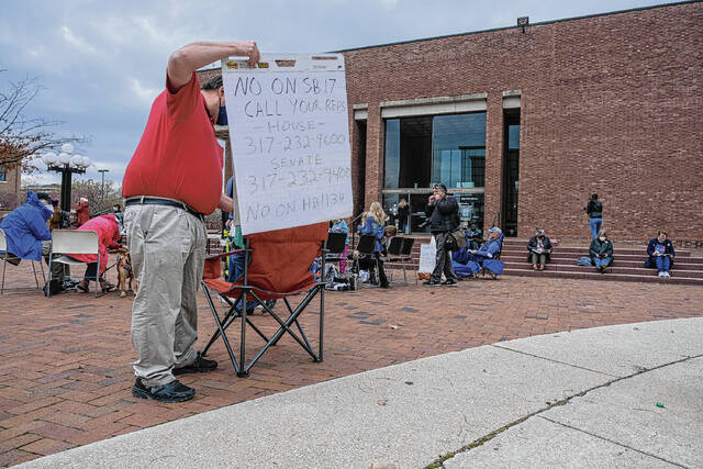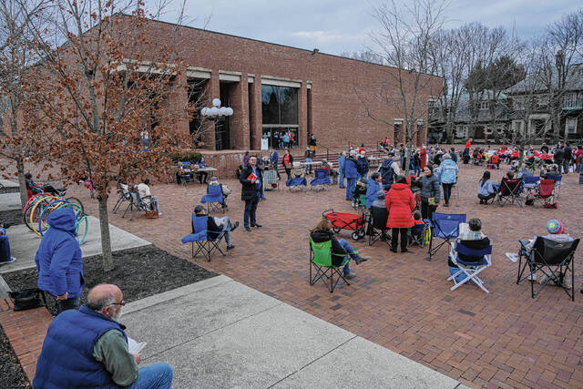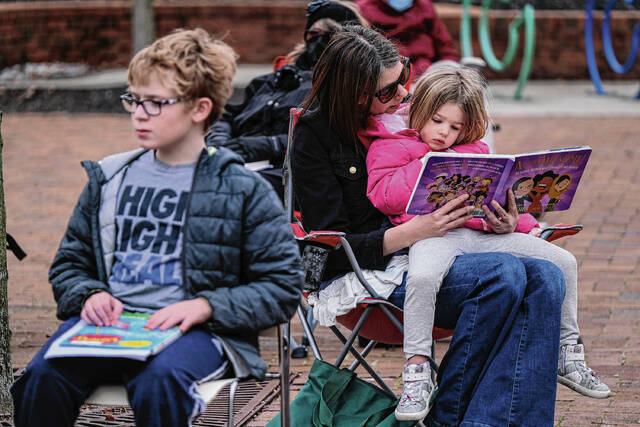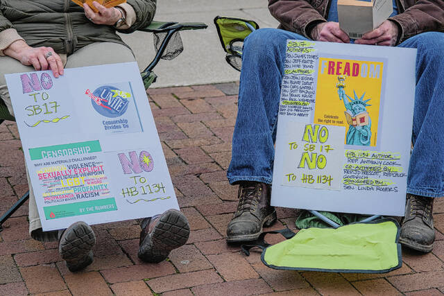 Mike Wolanin | The Republic People attend a community read-in at the Bartholomew County Public Library to protest House Bill 1134 and Senate Bill 17 in Columbus on Feb. 16.