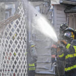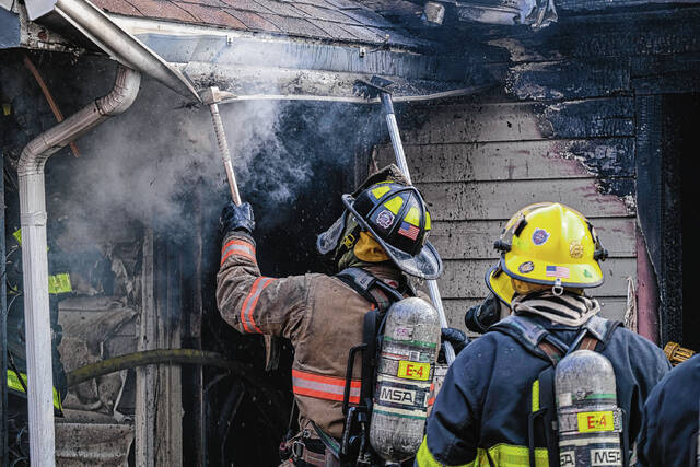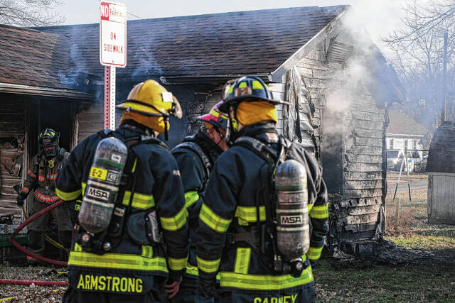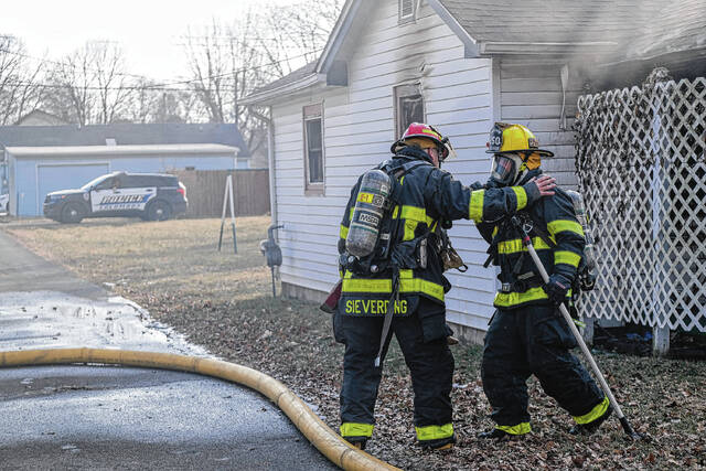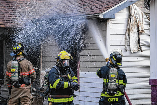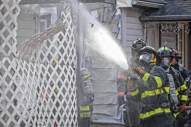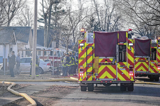 The house next door at 211 N. Ross St. sustained damage from the immense heat from the fire, Wilson said. That home’s vinyl siding melted as a result of radiant heat. Firefighters cooled the area and, after an inspection of 211 N. Ross St., it was determined that the damage was confined to that home’s exterior.