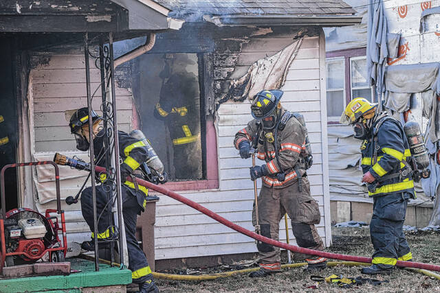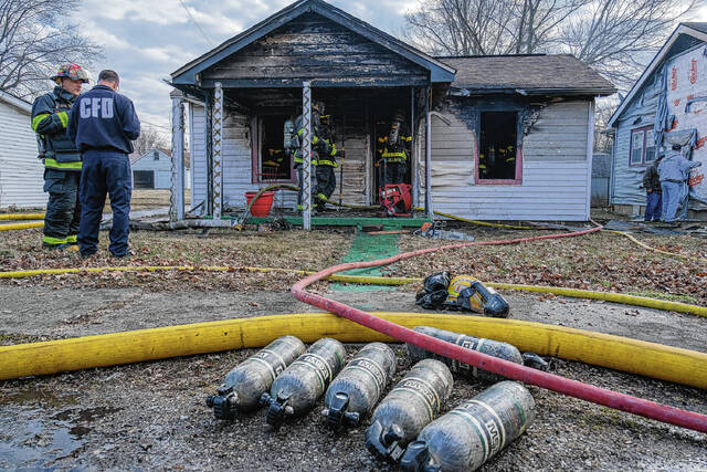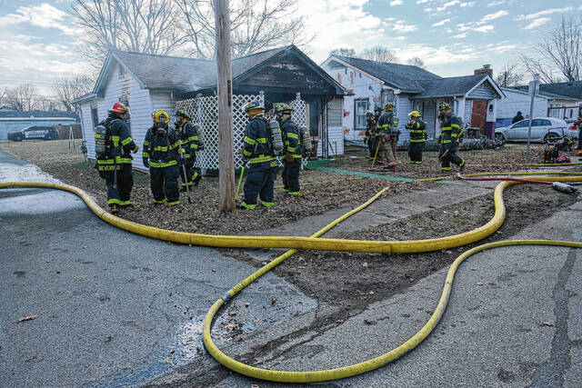 Mike Wolanin | The Republic Columbus firefighters respond to a house fire at 217 Ross St. in Columbus, Ind., Wednesday, Feb. 16, 2022.