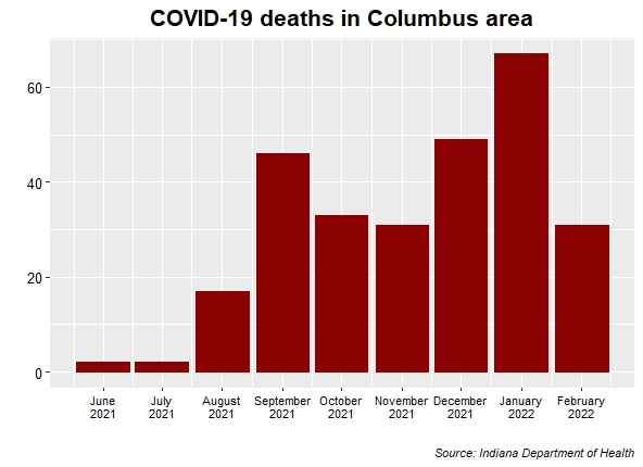 Bartholomew County, for its part, remains on pace for 22 deaths this month, which would be one of the deadliest months of the pandemic.