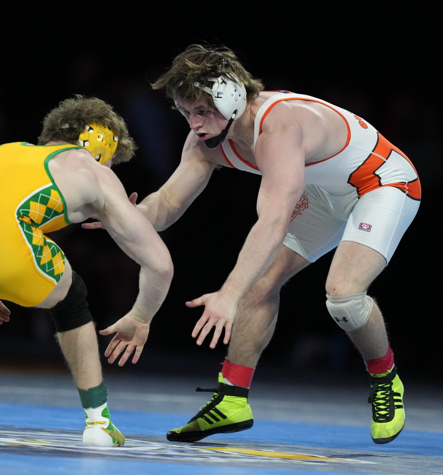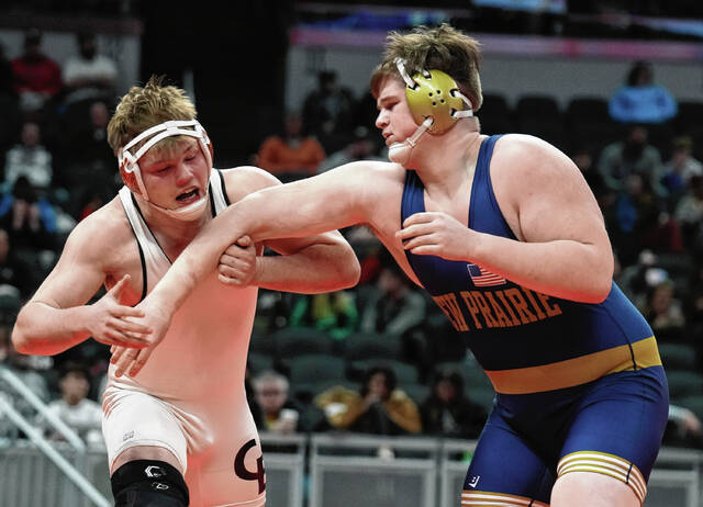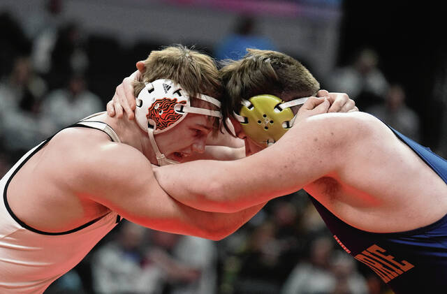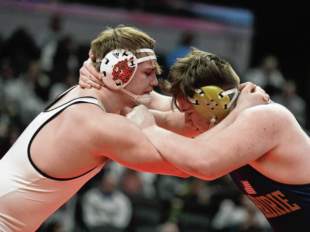 Two other Olympians who qualified for state — senior Noah Lykins at 120 and junior Tommy Morrill at 220 — lost one-point decisions in Friday’s opening round.
